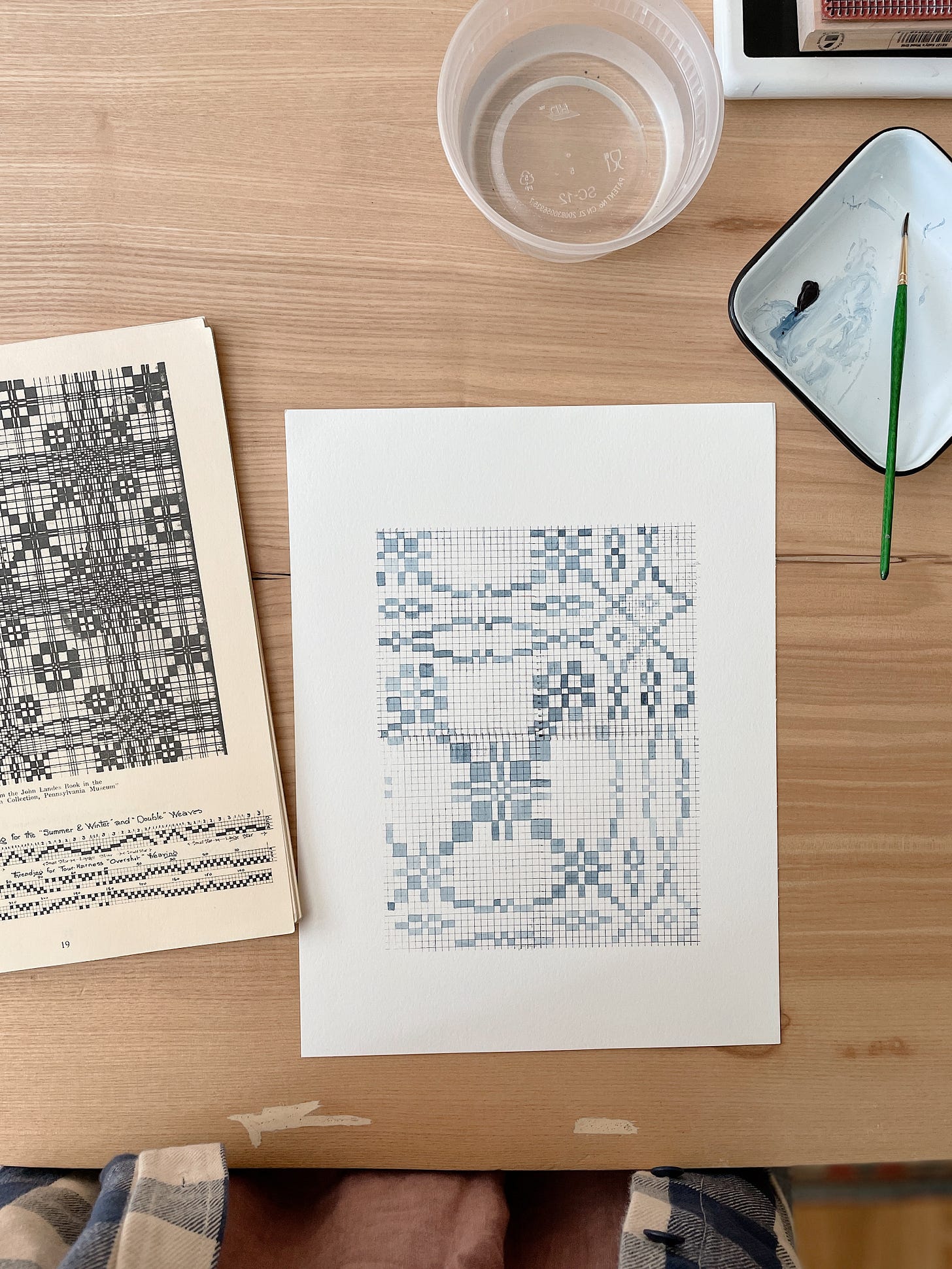 Both women are known to be pioneers within the textile world for pushing the boundaries of what could be considered “art” versus what was relegated to merely “craft”. Often creating artworks that could also be translated into interior textiles, the design process and their grid paintings have become an irrevocable part of their legacies. For me, I see the link between paper and cloth as a conversation, and a way to further document and explore what is discovered while creating on the loom.